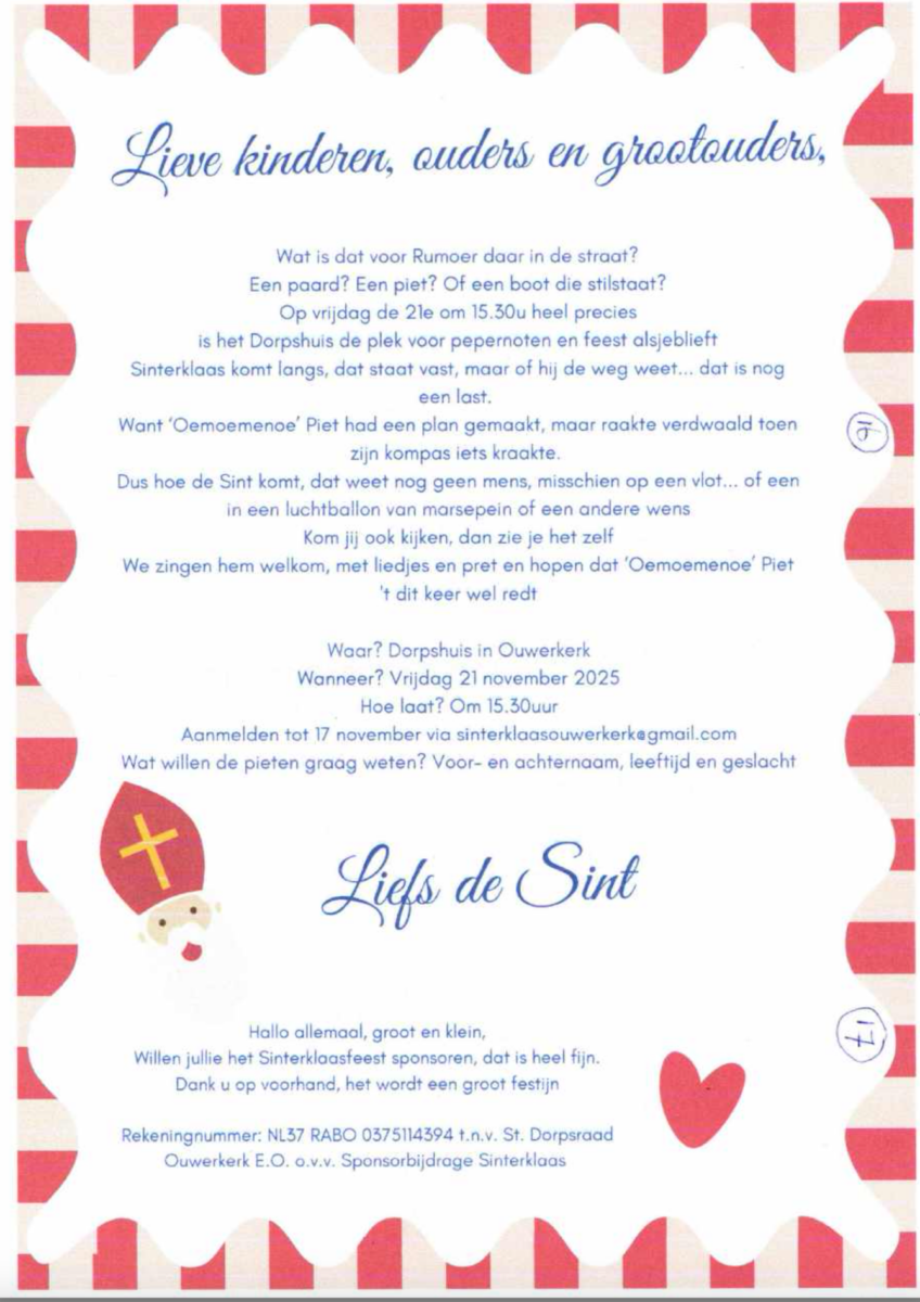 Bijgaand een mooie brief van de Sint